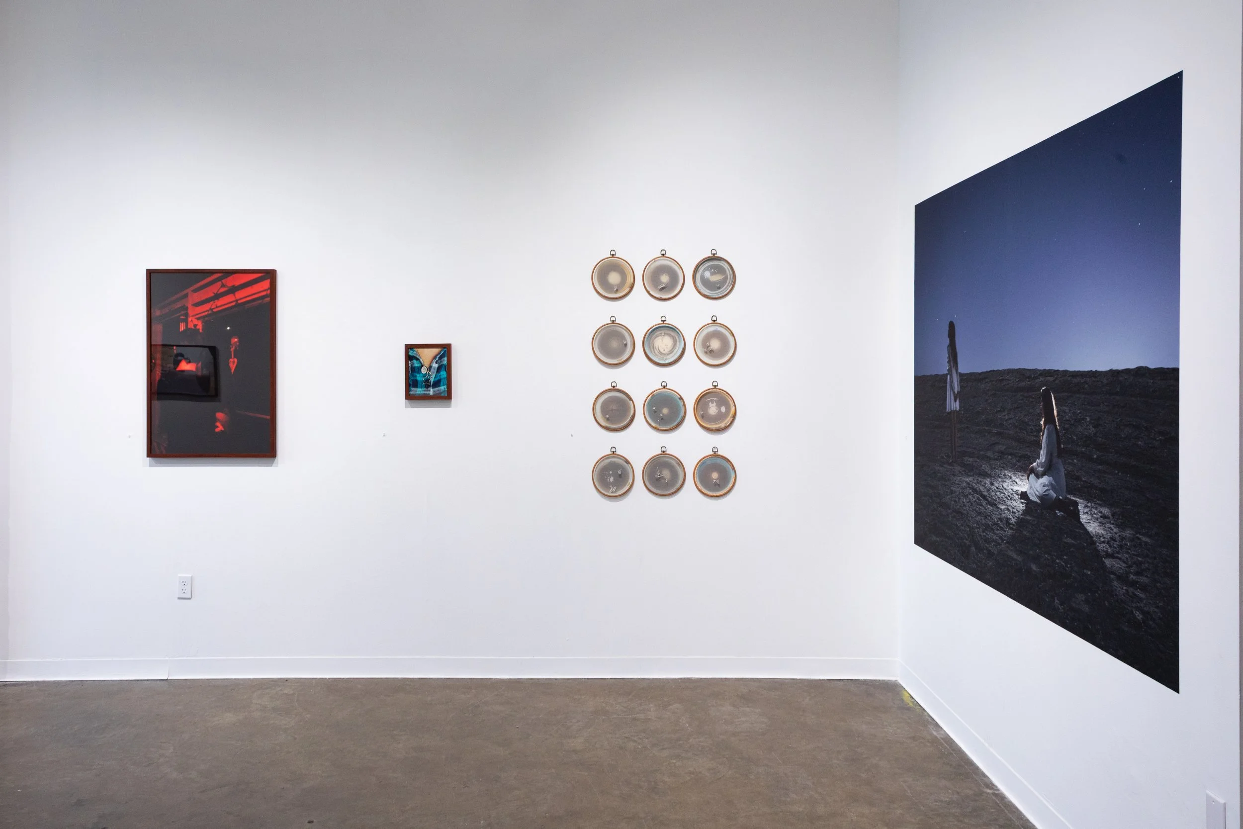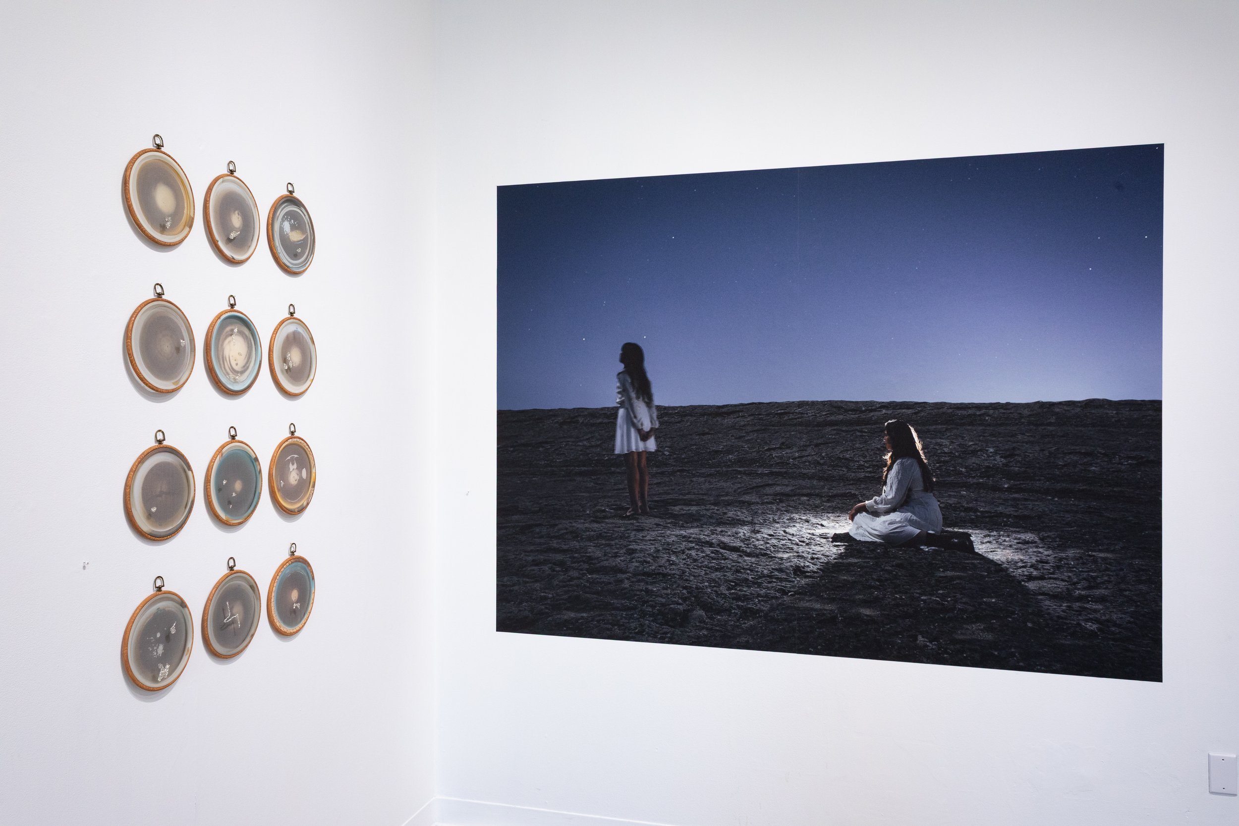 The Moon Knows Your Name brings together the work of Ariana Gomez and Chantal Lesley, two artists whose practices explore memory, myth, and the fragile boundaries between reality and the imagined. Rooted in photography and expanded through textiles, sculpture, installation, and film, both artists create visual languages that hold what slips between generations, across geographies, and through the quiet terrain of grief, longing, and becoming.